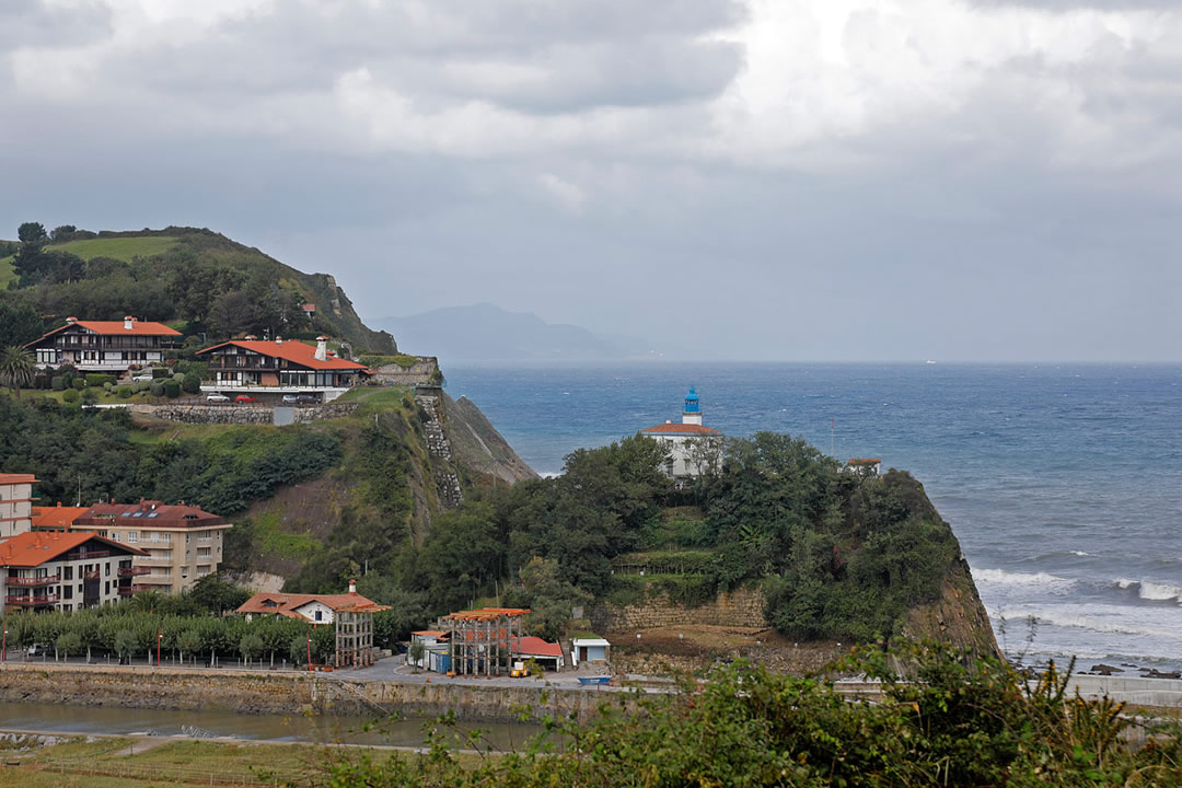 Distance: 15km ........Altitude de 2 à 204m ................Dénivelée positive cumulée : 580m ........Temps de marche: 4H GETARIA. Niché entre deux superbes plages et en face d'un petit îlot, Getaria est un joli village pittoresque de pêcheurs, apprécié pour ses plats de poissons frais accompagné du vin local appelé Txakoli, que l'on peut déguster au port. C'est aussi la ville d'origine du célèbre créateur de mode Balenciaga, dont un musée lui est dédié. Getaria se situe sur la côte de Biscaye à environ 25 km à l'ouest de Saint-Sébastien . Les vues dont bénéficie ce joli petit port sont tout à fait exceptionnelles: un centre-ville médiéval, une petite montagne sur un îlot, un port de pêche, deux plages (Gaztetape and Malkorbe), l'océan Atlantique et les collines verdoyantes parsemées de vignobles du fameux vin Getariako Txakoli . Dans le quartier du port , pensez à vous arrêter dans l'un des nombreux restaurants pour déguster un plat de poisson grillé et goûter au vin local, le Txakoli . Nous vous conseillons vivement de commander les mulets rouges (« salmonetes » en espagnol) . A l'extrémité du port commence le Mont San Antón , qui, jusqu'au XVème siècle était une île. Le Mont est plus communément appelé Ratón de Getaria (la Souris de Getaria), dû à sa forme de souris qui le caractérise. Parc Naturel doté d'une flore et d'une faune exceptionnelle (notamment une colonie d'oiseaux marins), il offre de nombreux sentiers qui vont emmèneront à son sommet. En chemin, vous découvrirez le phare, depuis lequel s'opérait l'observation des baleines (Getaria étant un ancien village de baleiniers, comme la plupart des villages de la côte basque). Si vous continuez jusqu'au sommet du Mont, vous serez récompensé par un panorama remarquable sur la ville et la côte.